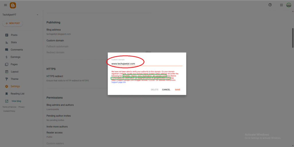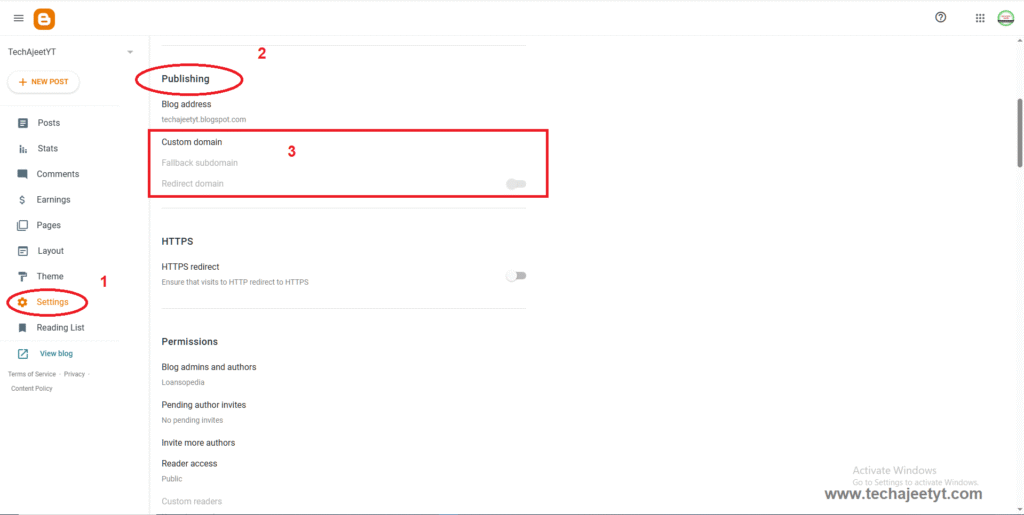 अभी हम Blogger में ख़रीदे हुए Domain को ब्लॉगर के साथ कनेक्ट करेंगे।उसके लिए आपको स्टेप में कर के बताएंगे।