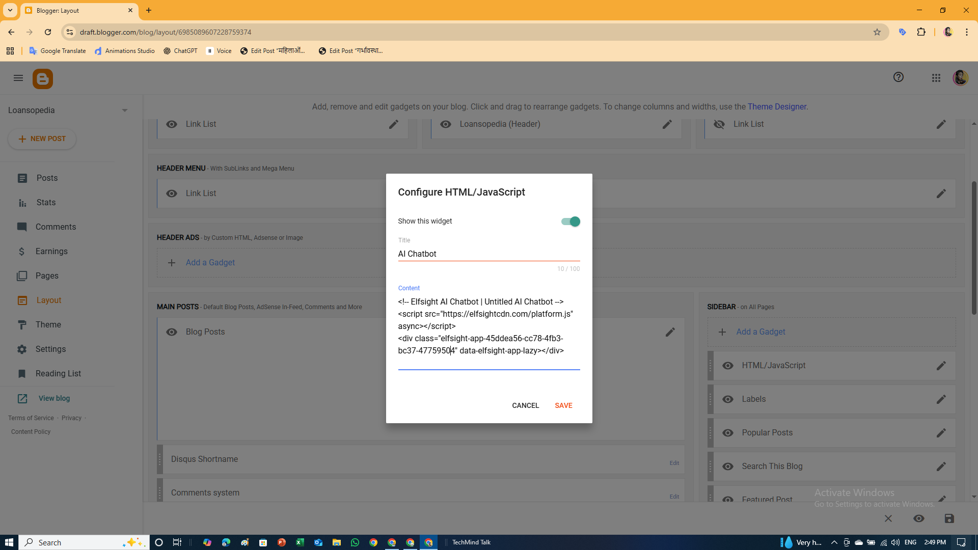 AI Chatbot को ब्लॉगर में कैसे जोड़े?